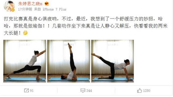 7、朱婷爱上做瑜伽不忘秀长腿 还未考虑国家队事情