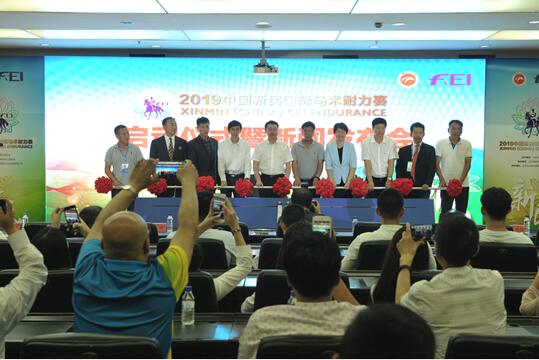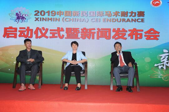 8月13日,2019中国新民国际马术耐力赛启动仪式暨新闻发布会隆重举行,辽宁省体育发展中心柏叶培训基地主任田德新,辽宁省体育发展中心柏叶培训基地马术项目负责人王文涛,沈阳市体育局社会体育管理中心主任田野。新民市市委常委柴静祥,新民市副市长李晓萌,新民市文化旅游和广播电视局局长梁勇。北京九州金马国际文化发展有限公司董事长贾惠林,中国马术耐力赛著名冠军骑手郅钢,智利三星级马术耐力赛冠军张秀岩,中央电视台著名主持人蔡猛等嘉宾领导出席了发布会。