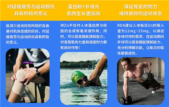 日常运动或健身时,代谢增强,微量元素消耗增加。并且,伴随着汗液不断流失,人体对微量元素的需求会进一步增强!因此,运动大量出汗后需要补充适量的微量元素。其中,锌对于人体又起到举足轻重的作用!