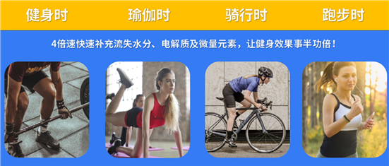 4倍速补水,多种微量元素,热量低,口味佳——专为运动健身群体打造的补液元势必席卷各类运动场所,辅助运动人士收获更显著的锻炼效果!