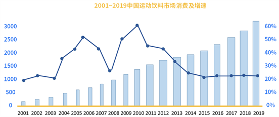 其实,运动出汗后不适宜在短时间内补充的大量的水分。运动出汗后一次性补充大量的水,容易加重心脏负担,同时可能会导致人体代谢进一步失衡,会出现抽筋、眩晕等现象,影响身体状态。因此,随着人们了解到可以选择运动饮料补充流失的水分与电解质。运动饮料市场亦随之呈现出巨大的潜力。