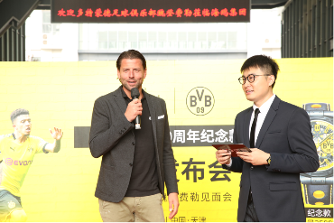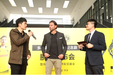 下午十二点五十分,发布会正式开始。多特传奇球星在球迷们的千呼万唤中惊艳亮相,现场气氛瞬间点燃。著名足球解说员鲁靖明,受到邀请担任此次活动主持人,为球迷们带来现场精彩解说。