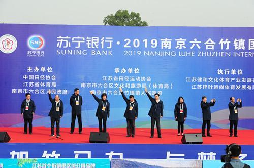 2019年10月27日上午9:30,伴随发令枪响,8000名跑者冲出起跑线,在全国重点镇、国家生态镇、国家特色景观旅游名镇、国家农村产业融合发展示范园、中央农业强镇示范镇—竹镇镇的赛道上,用脚步感知魅力竹镇,用速度挑战自我极限。本届苏宁银行•2019南京六合竹镇国际半程马拉松(以下简称"竹马")以"加竹马力•与梦齐飞"为主题,由中国田径协会、江苏省体育局和南京市六合区人民政府主办,江苏省田径运动协会、南京市六合区文化和旅游局(体育局)和南京市六合区竹镇镇人民政府承办,江苏健和文化体育产业发展有限公司和江苏梓叶运尚体育发展有限公司执行。