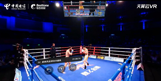基于5G低时延、大带宽的特点,“天翼云VR”以完善的VR技术成功护航本次直播,百兆码流实现超高清画质,60fps超高频率保证播放流畅无卡顿,让观众的体验感与参与度相较以往再一次升级!此外,中国电信在擂台对角线与选手等高的位置设置了两个3D机位,多机位拍摄比赛进程让用户近距离感受到搏击现场的火热。