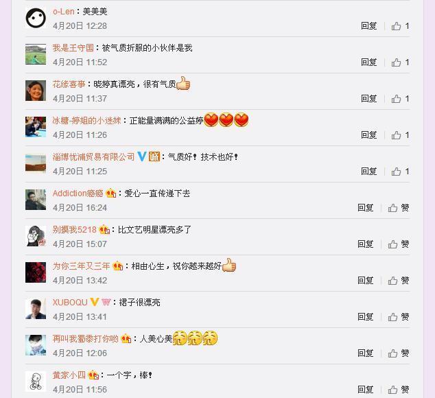 王楠@了潘晓婷,并写道:有爱心的人最美。