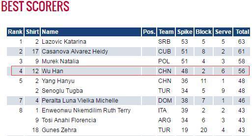 吴晗在小组赛排名得分榜第四。