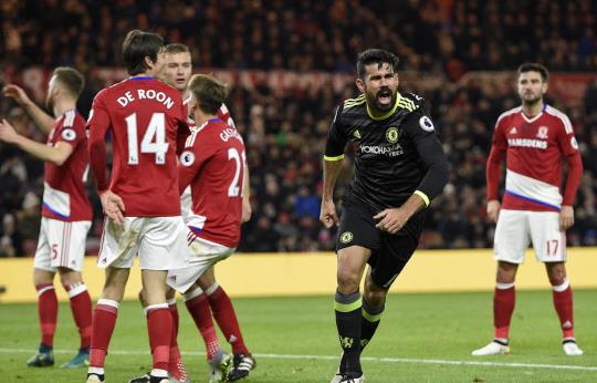 11月21日凌晨0点,2016-17赛季英超联赛第12轮的一场比赛在河畔球场进行,切尔西在客场挑战米德尔斯堡。迭戈-科斯塔帮助蓝军打入比赛唯一进球,佩德罗则击中横梁,最终,切尔西客场1-0取胜,拿到英超六连胜,积分反超利物浦,排名上升到积分榜的第一位。