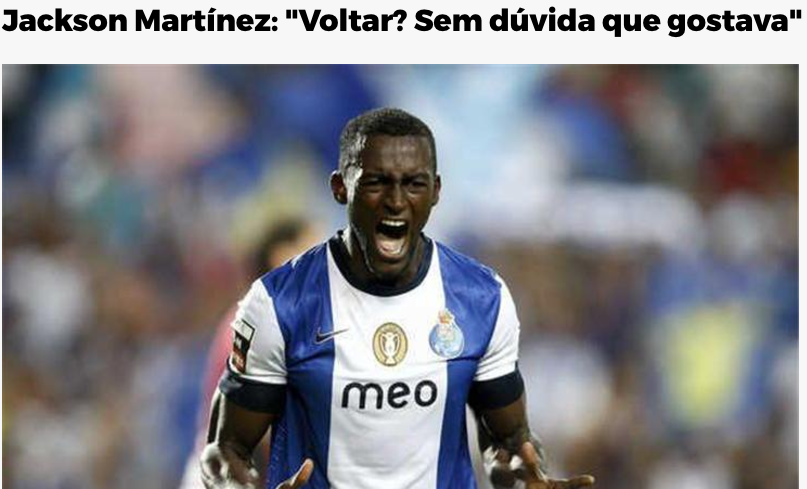 马丁内斯表示:“回归波尔图?现在我还不清楚是否能发生。如果能回到波尔图,我真的非常喜欢,我相信这在将来的某一天会发生。关于这一点,每个人都很清楚。我在波尔图有很多珍贵的回忆,尤其是2012年那次夺得联赛冠军,那时我们击败了里斯本竞技,我永远不会忘记。”(Questionado sobre o melhor golo que marcou ao serviço dos azuis e brancos, o colombiano foi claro: «Foi contra o Sporting, em 2012, sem dúvida, devido à dificuldade e porque não foi um golo casual».)