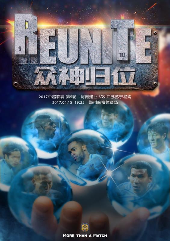 凤凰体育讯北京时间4月13日,江苏苏宁足球俱乐部发布了江苏苏宁易购队中超第五轮客场对阵河南建业的官方海报。