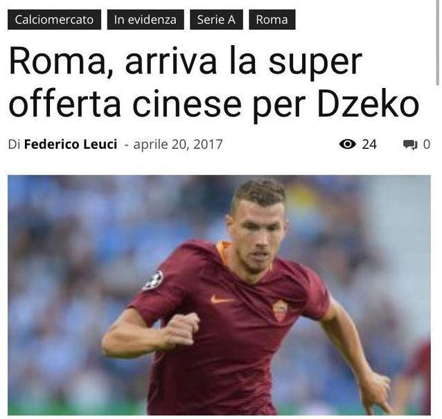 虽然2017年中超仅进行5轮,但夏窗转会扑面而来。来自意大利媒体的消息称,中超土豪再一次将目光锁定在亚平宁足坛,打算引进意甲射手王哲科,据传报价达到惊人的4000万欧元,希望以如此高昂的价格打动罗马。